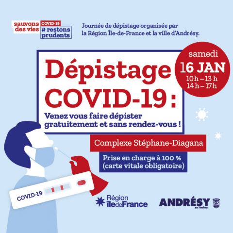 La ville d'Andrésy et la Région Ile-de-France organisent une opération gratuite de dépistage antigénique samedi 16 janvier au complexe Stéphane-Diagana. Le test antigénique est effectué via un prélèvement nasal et permet son résultat en 20 minutes. Pour cette opération, l'espace de dépistage est installé dans le complexe Stéphane-Diagana, de 10h à 13h et de 14h à 17h. Il est ouvert à toutes les personnes âgées de 5 ans et plus, et est gratuit.