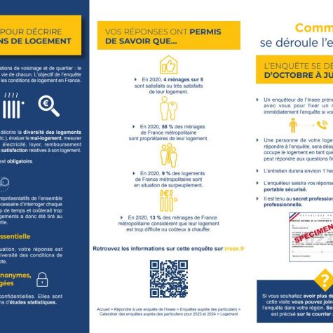 L'INSEE procède actuellement à une enquête sur le thème du logement. Cette enquête est essentielle pour connaître les conditions de logement...